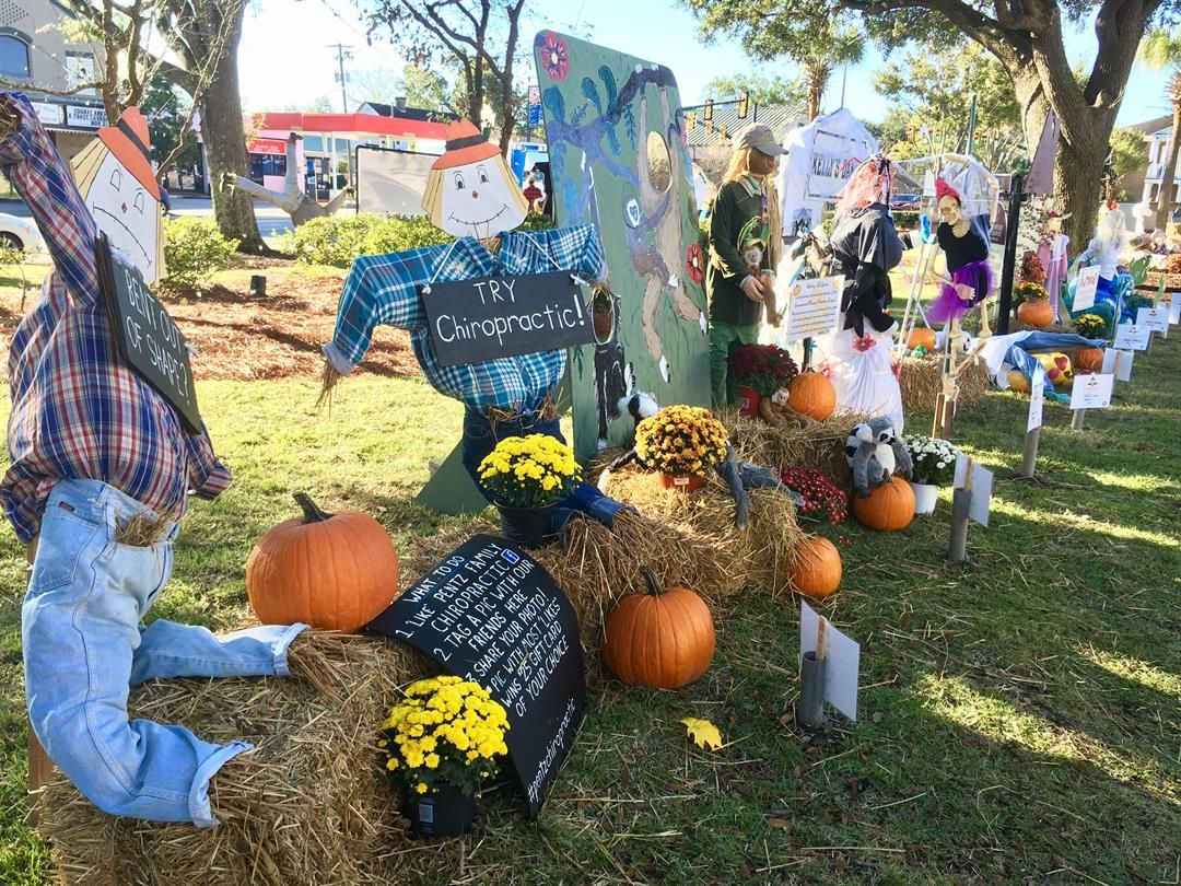 Scarecrows on the Square is put on by the Junior Service League of Summerville every year. If you haven’t seen Hutchinson Square this week, the scarecrows have been up since October 13th. Businesses, civic groups, schools and individuals all contribute. They’ll be on display this year until Friday, October 24th so be sure to come down to Hutchinson Square and have some fun.